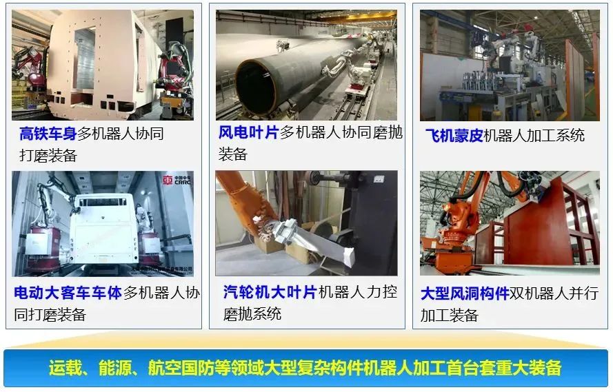 該項目圍繞大型復雜曲面零件高效高品質(zhì)加工這一難題,創(chuàng )新性提出了多機器人自律加工新原理與新模式,形成了大尺度全域測量、變曲率隨形順應、大型面平整度/粗糙度波動(dòng)調控三項核心技術(shù),研制出系列化的大型復雜曲面機器人“測量-加工”一體化首臺套重大裝備,實(shí)現了我國高鐵車(chē)身、風(fēng)電葉片、大型風(fēng)洞構件、汽輪機大葉片從人工磨拋到機器人磨拋的技術(shù)躍升。項目成果在中國中車(chē)(青島四方、時(shí)代新材、時(shí)代電動(dòng)、南京浦鎮)、29基地、無(wú)錫透平、中國商飛、中航沈飛等企業(yè)得到應用,孵化出中車(chē)時(shí)代智能、集萃華科、黎曼等一批專(zhuān)精特新/高新技術(shù)企業(yè)。